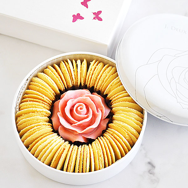 ●内容:ラングドシャバニラ30g、ローズチョコ1個、フレーズサブレ1枚