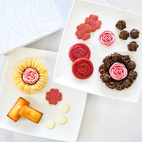 ●内容:ラズベリーローズフィナンシェ2個、フィナンシェ3個、リングバニラローズチョコ1個(ラングドシャバニラ30g、ローズチョコ1個、フレーズサブレ2枚)、クランチローズチョコ1個(チョコクランチ45g、ローズチョコ1個、フレーズサブレ2枚)