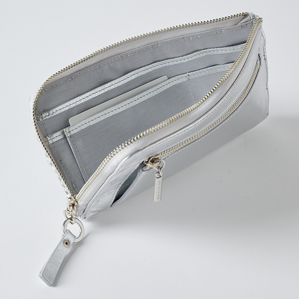 お札にぴったりなコンパクトサイズの長財布。背面にはコインファスナーポケットが幅なりにつき使いやすい仕様となっています。従来より軽量化を図り、バッグの容量の負担になりません。