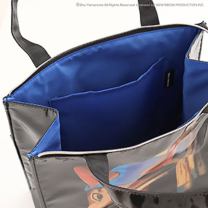 床置きにする際にもしっかり自立し、ファスナー付きのため中身が見える心配もありません。外側はラミネート加工をしているため、水や汚れをさっと拭き取ることができます。