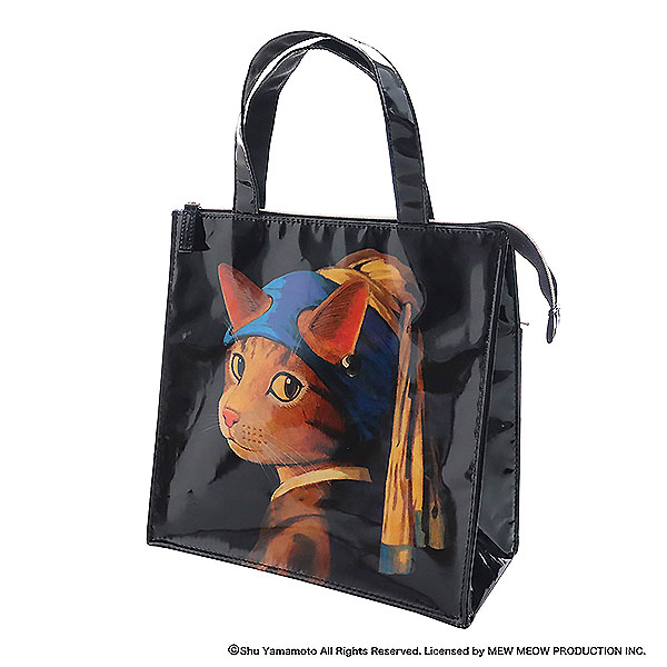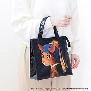 クリスマス≪CAT ART(キャットアート)≫ランチトートバッグ 真珠のイヤリングをした少女猫/ヨハネス・フェルネーコ(ブラック)