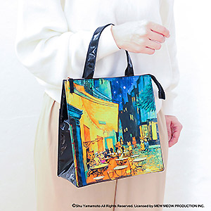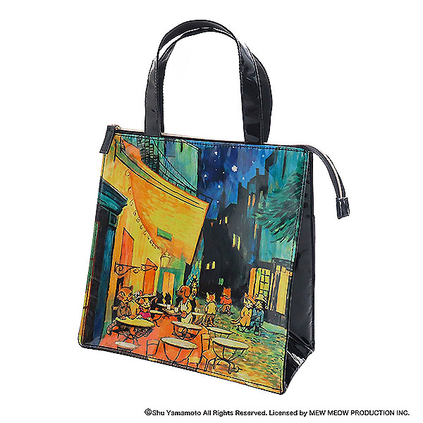 クリスマス≪CAT ART(キャットアート)≫ランチトートバッグ 夜のカフェテラス /ヴィンセント・ヴァン・ニャッホ(ブラック)