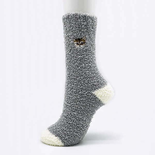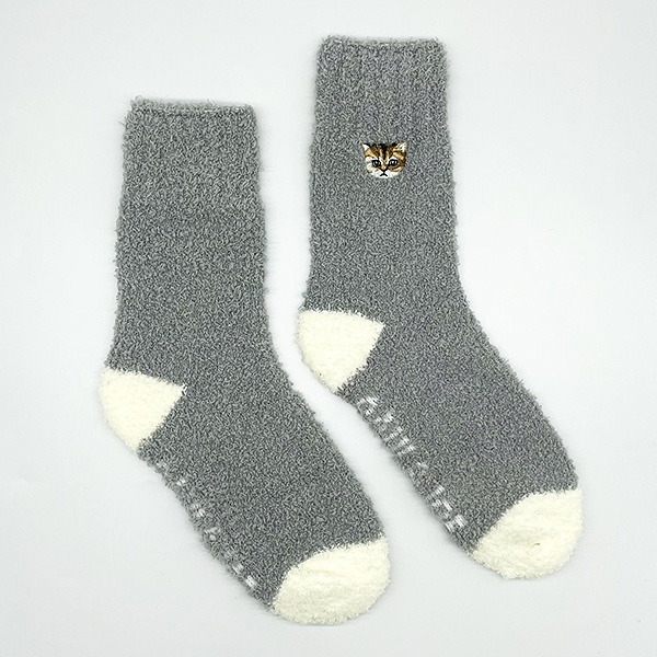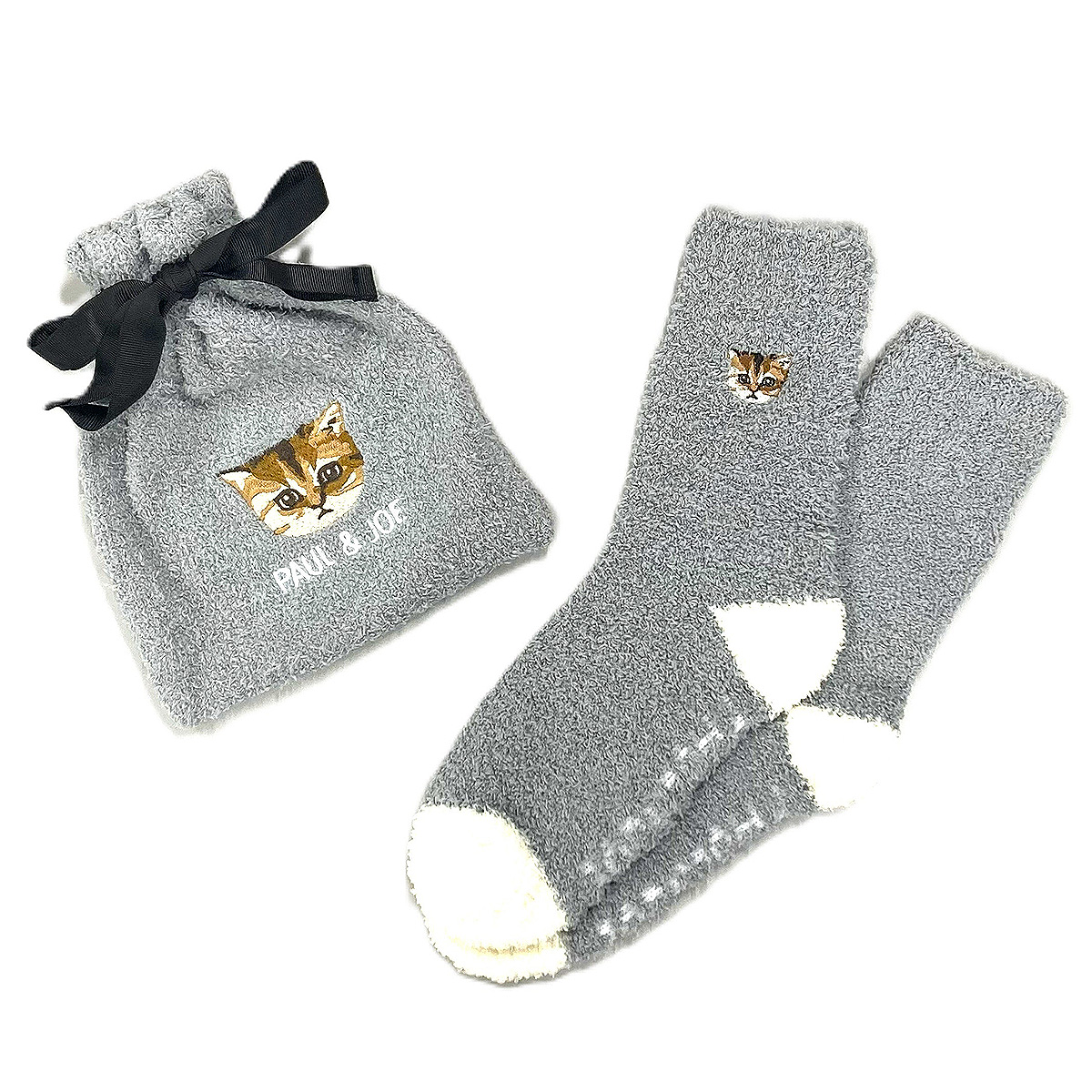 クリスマス≪PAUL & JOE(ポール & ジョー)≫マシュマロ ヌネット刺繍巾着入リ ルームソックス(Mグレー)