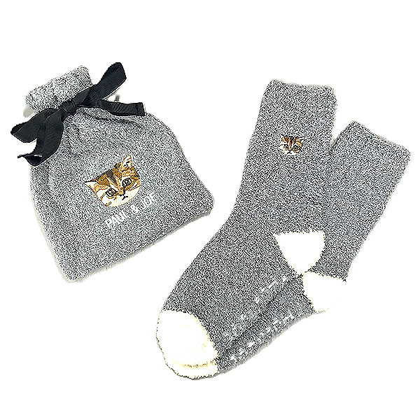 ふんわりとしたマシュマロ生地に「PAUL & JOE」のアイコンの猫『ヌネット』のワンポイント刺繍が可愛いルームソックス。ルームソックスだけでも可愛いのに、お揃いの巾着もセットになっています。ギフトにピッタリな商品です。