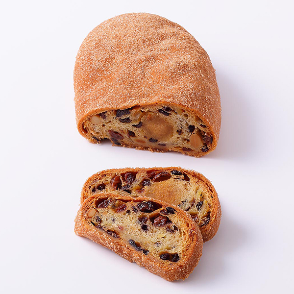 ●内容:ドライフルーツ、ナッツ入りパン、シナモンシュガー