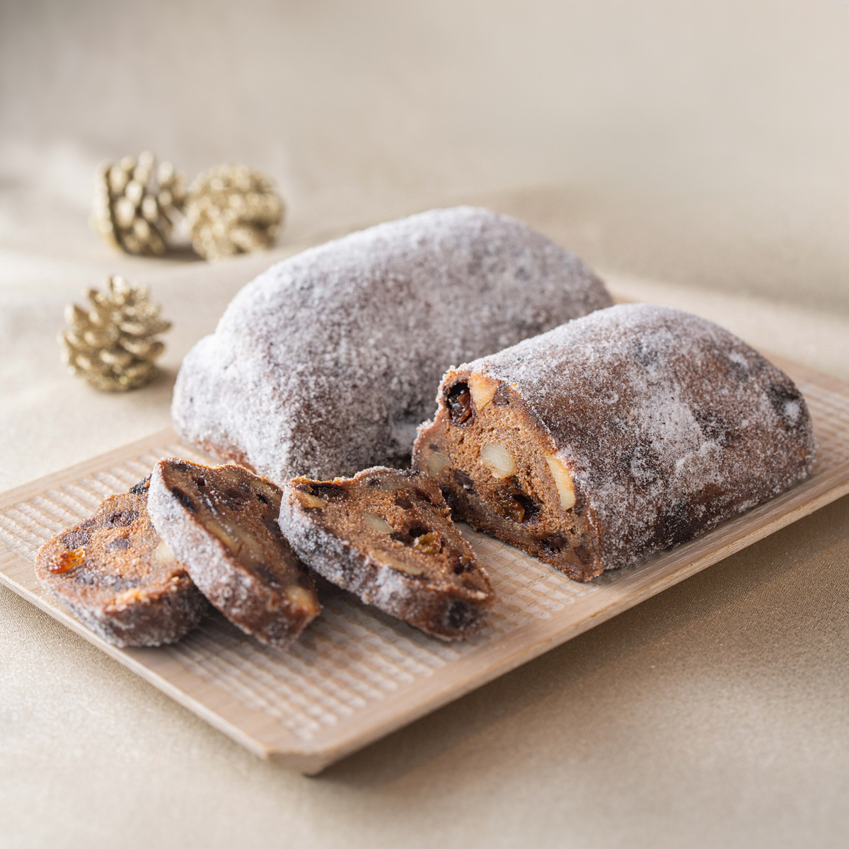 ソーテルヌワイン(貴腐ワイン)漬けレーズンの芳醇な香りとビターチョコレートの濃厚な味わいのシュトーレンです。>>[クリスマスギフト]シュトーレン 商品一覧>>[クリスマスギフト]洋菓子 商品一覧>>渋谷ヒカリエ ShinQsのクリスマス 商品一覧>>クリスマスギフト 商品一覧