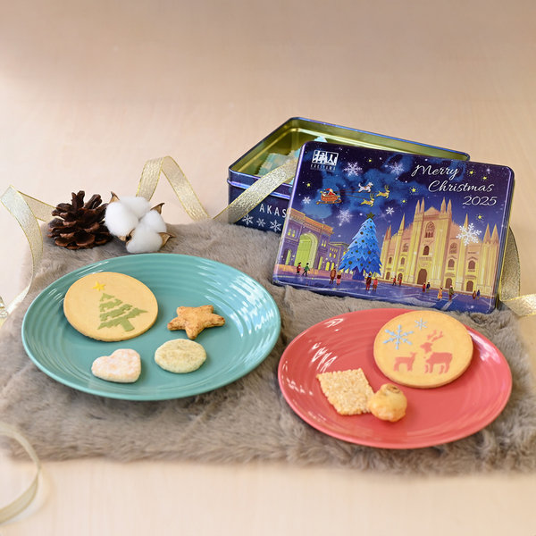 ●内容:玉子煎餅(トナカイ・ツリー)×各1枚、ひとくち慶長チーズ・ミニスター醤油・ミニハートホワイトシュガー・小丸せんべい青海苔・古乃端アーモンド×各4枚