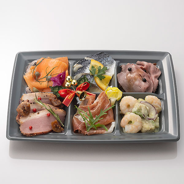 スモークサーモン ケイパー添え、ニシンのオレンジマリネ、ローストビーフ、合鴨のスモークパストラミ、生ハム ハモンセラーノ、海老とアボカドのサラダ