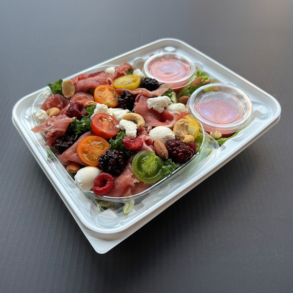 ●内容:レタス、生ハム、チーズ、ミニトマト、ベリー、ミックスナッツ、ケール、調味料(アミノ酸)、PH調整剤、乳酸