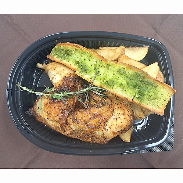 ●内容:ローストチキン(半身)、ガーリックトースト、ポテト