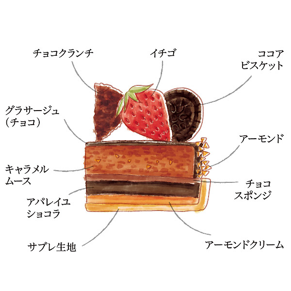 ほろ苦いキャラメルと濃厚なアパレイユに甘酸っぱい苺の調和。大人の心を満たす贅沢な組み合わせ。