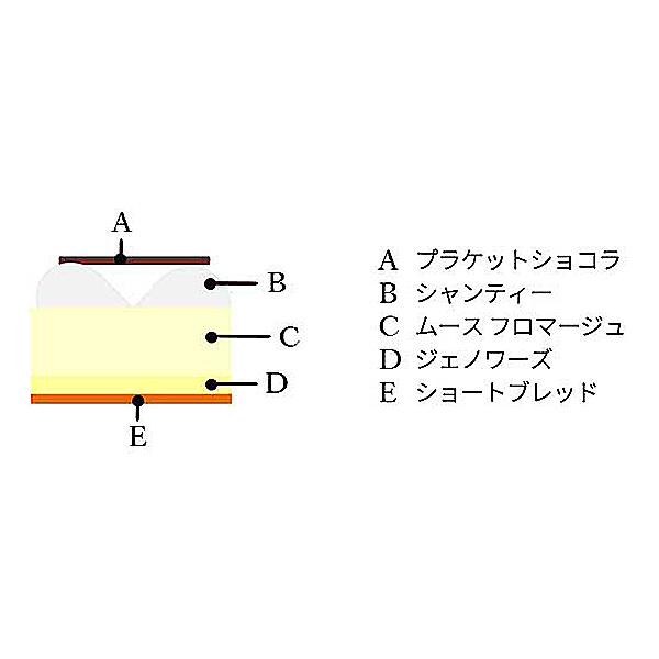 サクッと香ばしいショートブレッド生地の上に、ふんわりとしたジェノワーズ生地、なめらかなフロマージュムースを重ねました。