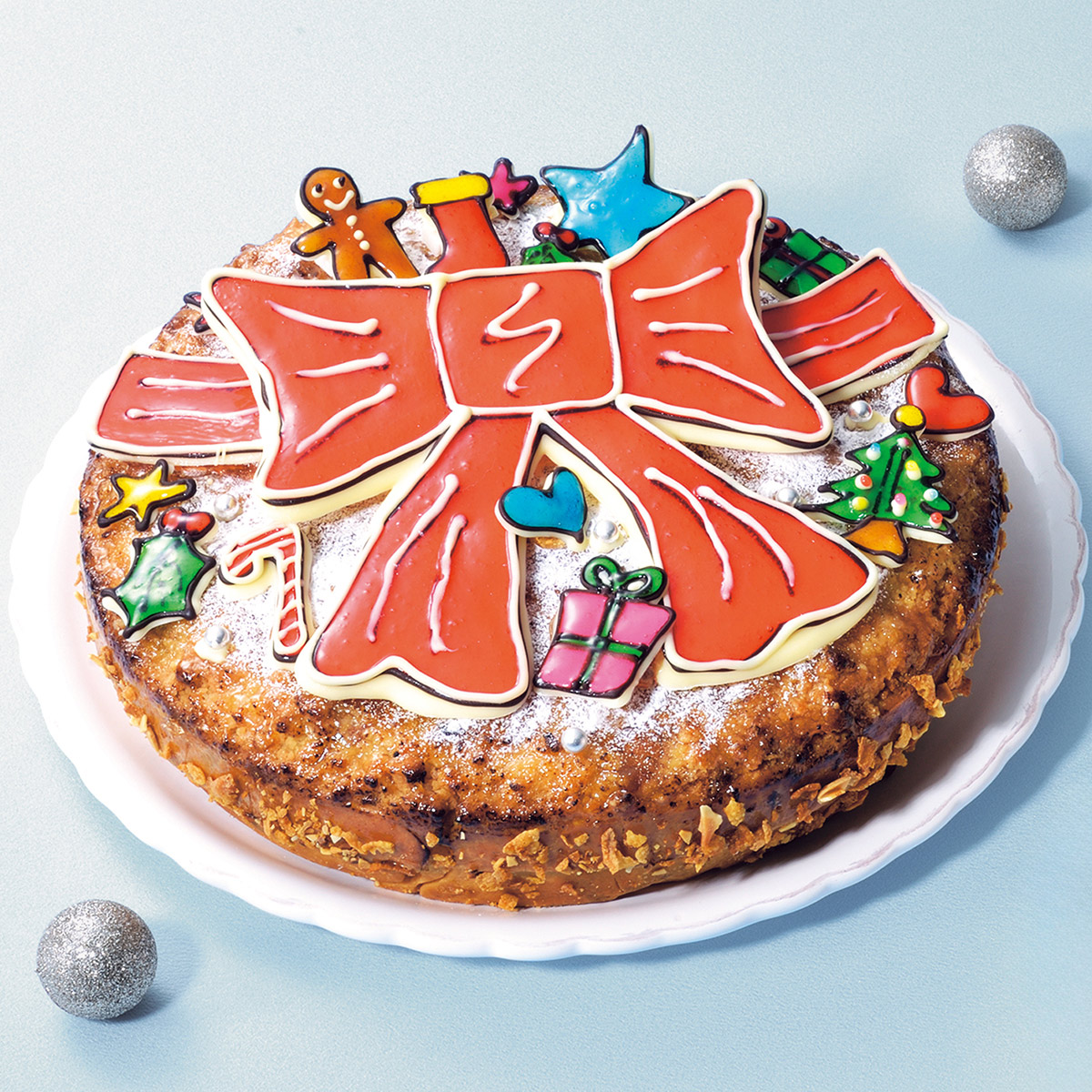 東急フードショー誕生25周年を記念した特別なクリスマスケーキ。赤いリボンが映えるカントリースタイルのアップルパイは、歯ごたえの良いふじりんごを贅沢に3個使用。りんごのシャキッとした食感を残すため、こだわりの焼き方で仕上げました。