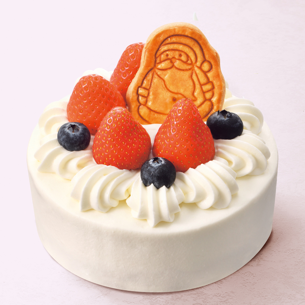 口どけの良いコクのある生クリームのデコレーションに、ビスケットのサンタクロースを飾りました。