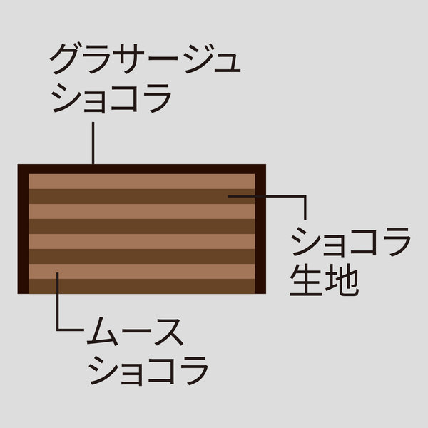 カカオの豊かな風味を楽しめるムースショコラと口どけの良いショコラ生地を積み重ねた滑らかなチョコレートケーキ。チョコレートを存分に堪能できるショコラティエ マサールのスペシャリテ。