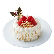ふんわりと口どけが良くたまごの風味が豊かなスポンジケーキで、スライスしたいちごとたっぷりのクリームシャンティをサンド。天面にはいちごを5粒トッピングし、柊オーナメントと金色の「メリークリスマス」オーナメントが華やかにケーキを飾ります。