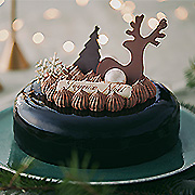 ホワイトチョコレートで包み込んだやわらかいフォルムのチョコレートケーキです。ウォールナッツ(くるみ)入りのチョコレートクリームをふわふわのチョコレートスポンジでサンドしました。