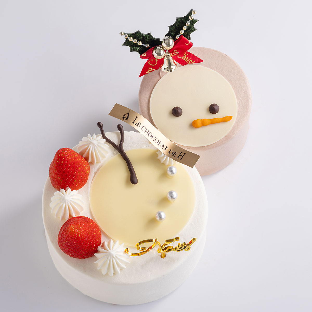 ノエルフレーズとノエルショコラ、2つの味が贅沢に楽しめるケーキ。可愛らしい雪だるまがクリスマスのひとときををより楽しく演出します。