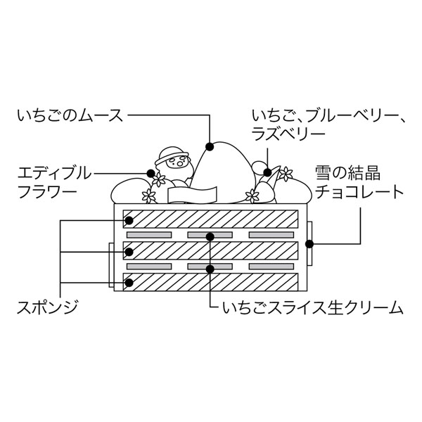 宝石のようにきらりと艶めくいちごのムースを主役にした、華やかでドラマティックなケーキ。甘酸っぱいいちごの味わいが特別なひとときを華麗に彩ります。