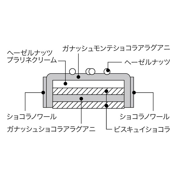 チョコレートとビスキュイのふんわり感、ヘーゼルナッツプラリネクリームのとろり感、ビターチョコレートガナッシュのすべすべ感のコントラストが絶妙です。