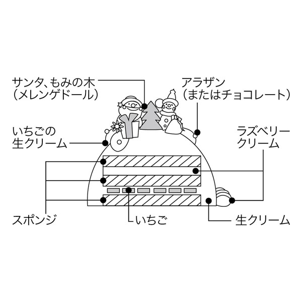 スポンジ・生クリーム・いちごを使ったドーム型のショートケーキ。チョコレートやメレンゲドールを自分で飾って世界で一つのクリスマスケーキを作れます。