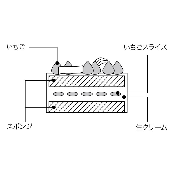 ふわふわのスポンジにとびっきりフレッシュな生クリームをたっぷり使用した、ほど良い甘さのケーキ。国産いちごを鮮やかに飾った、笑顔ふくらむ味わいです。