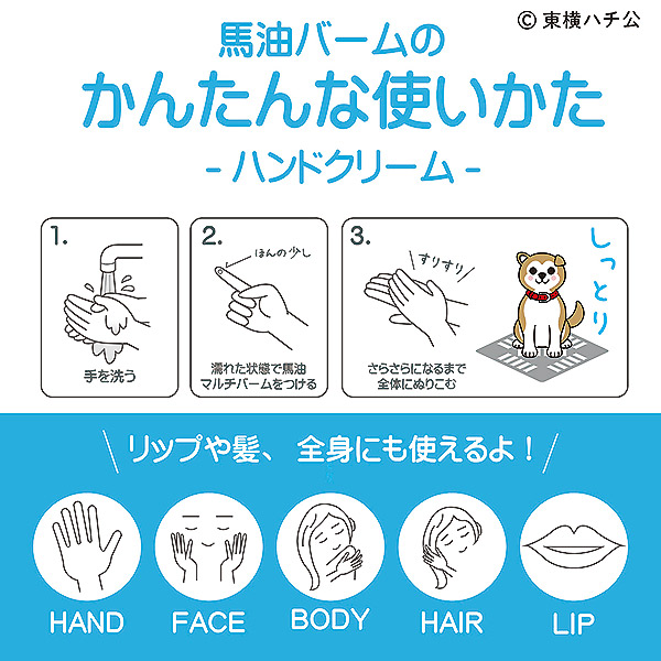 保湿力に優れた馬油を使用した、2000年創業の横濱馬油とのコラボアイテム。ハンドクリーム・ボディクリーム・ヘアオイル・リップクリームとしてマルチに使える多機能クリーム。