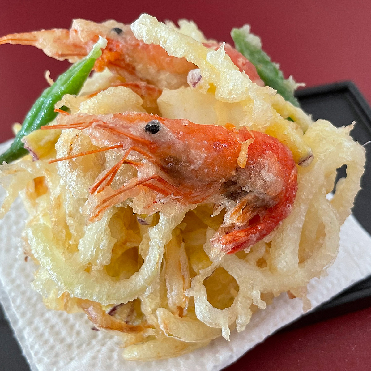 大きな殻付き海老、ホタテ、イカが入った店内厨房手作りのボリューム満点のかき揚げです。◎こちらの商品のお受け取り場所は「渋谷東急フードショー ソウドットダイニング」です。お受け取り場所はこちら