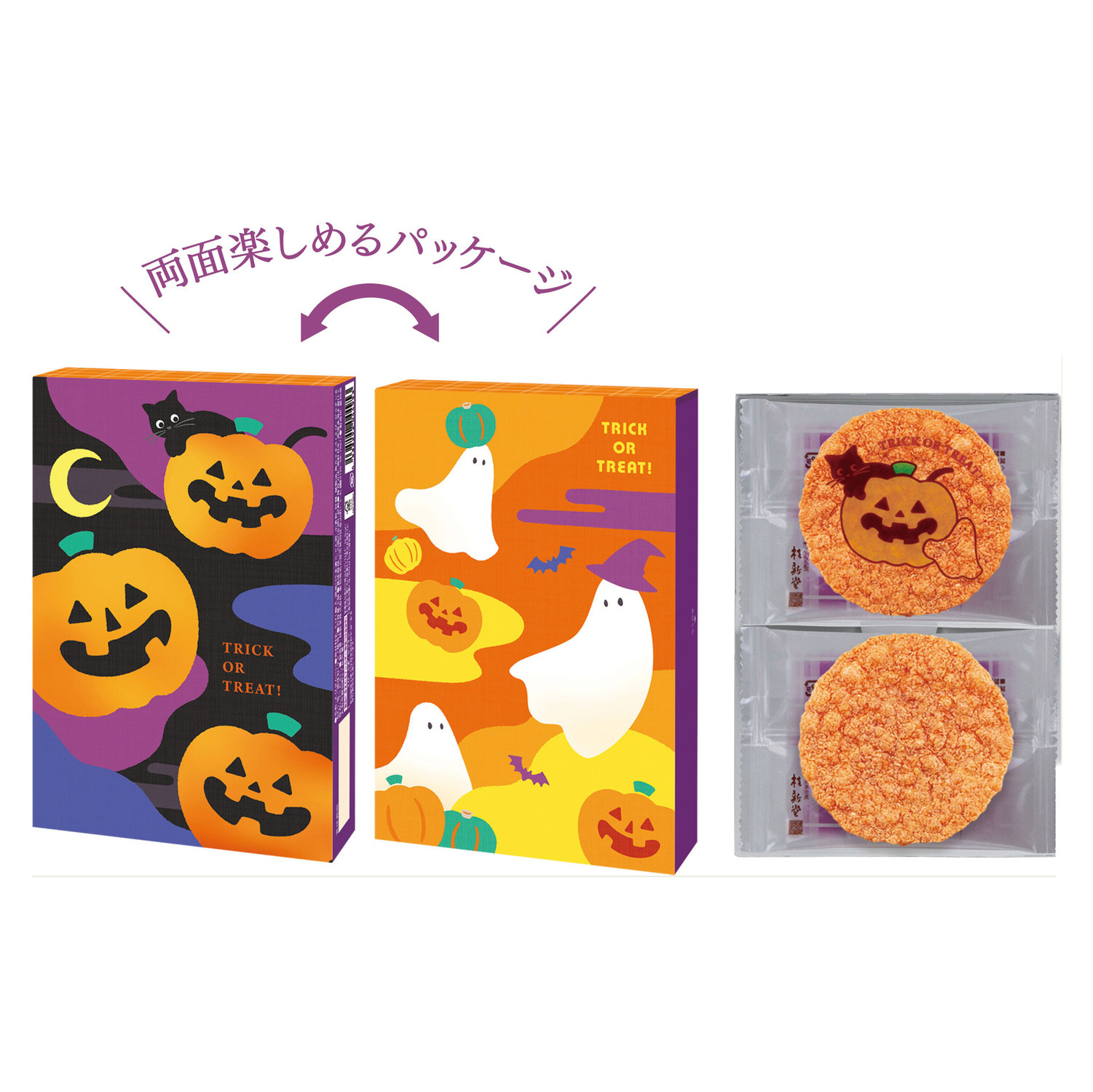◎渋谷ヒカリエ ShinQs(シンクス)取扱商品プリっとした身と濃厚な旨みが特徴である赤えびの美味しさを、ぎゅっと凝縮した濃いめの一枚。袋を開けた瞬間に広がる香りを持ち、サクサクとした食感で食べ応えも充分。そんな、赤えび炙り焼きをかわいいハロウィンパッケージでご用意しました。表面と裏面2つの絵柄が楽しめるリバーシブルデザインです。