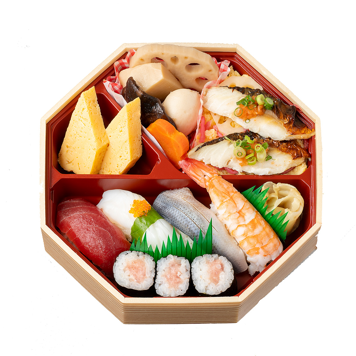 ●内容:焼きさばちらし、焼きさばにぎり、赤身、いか、えび、ねぎとろ巻き