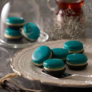 『glace Macarons Parisiens』の「glace(グラス)」はフランス語で「アイス」、「Macarons Parisiens(マカロン・パリジャン)」は「フランスパリ発祥のガナッシュクリームをサンドしたマカロン」を意味しています。その名のとおり、アイスのようにお召し上がりいただける逸品です。マカロンの生地の外側は「クッキーとマシュマロを合わせたような食感」、内側は「最中やキャラメルのような食感」をお楽しみいただけます。口に含むと崩れた生地がとろけて、中に挟まったガナッシュクリームと一緒になり、より濃厚な味わいとバニラの香りが口いっぱいに広がります。
