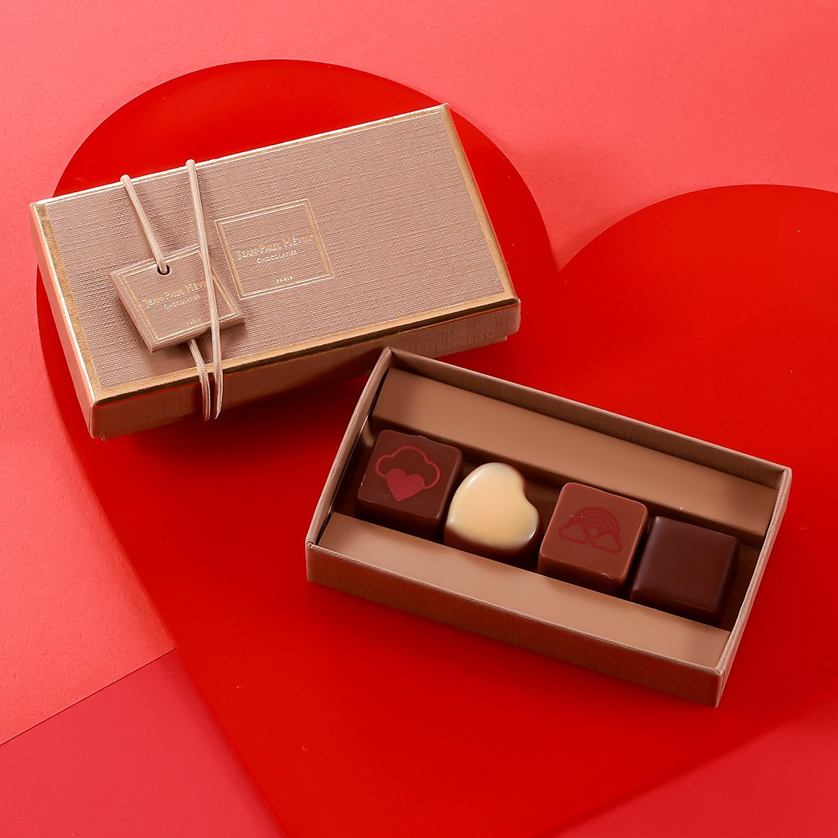 2026年ジャン=ポール・エヴァンのテーマ《DES REVES ET DES FEVES(夢、そしてカカオ)》カカオへの情熱と、その土地の生産者への深い敬意、そして皆様へ「ショコラを通じて喜びと幸せをお届けしたい」という想いを込めた新コレクションをお届けいたします。期間限定ボンボン ショコラ3種と代表作を含むショコラ4個詰合せ。華やかに彩られる<夢、そしてカカオ>の世界を、どうぞ存分にお愉しみください。