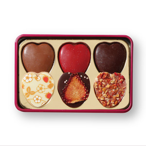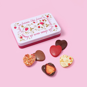 苺をかたどったミニサイズの板チョコレート。苺の素材を活かした6種類のフレーバー入り