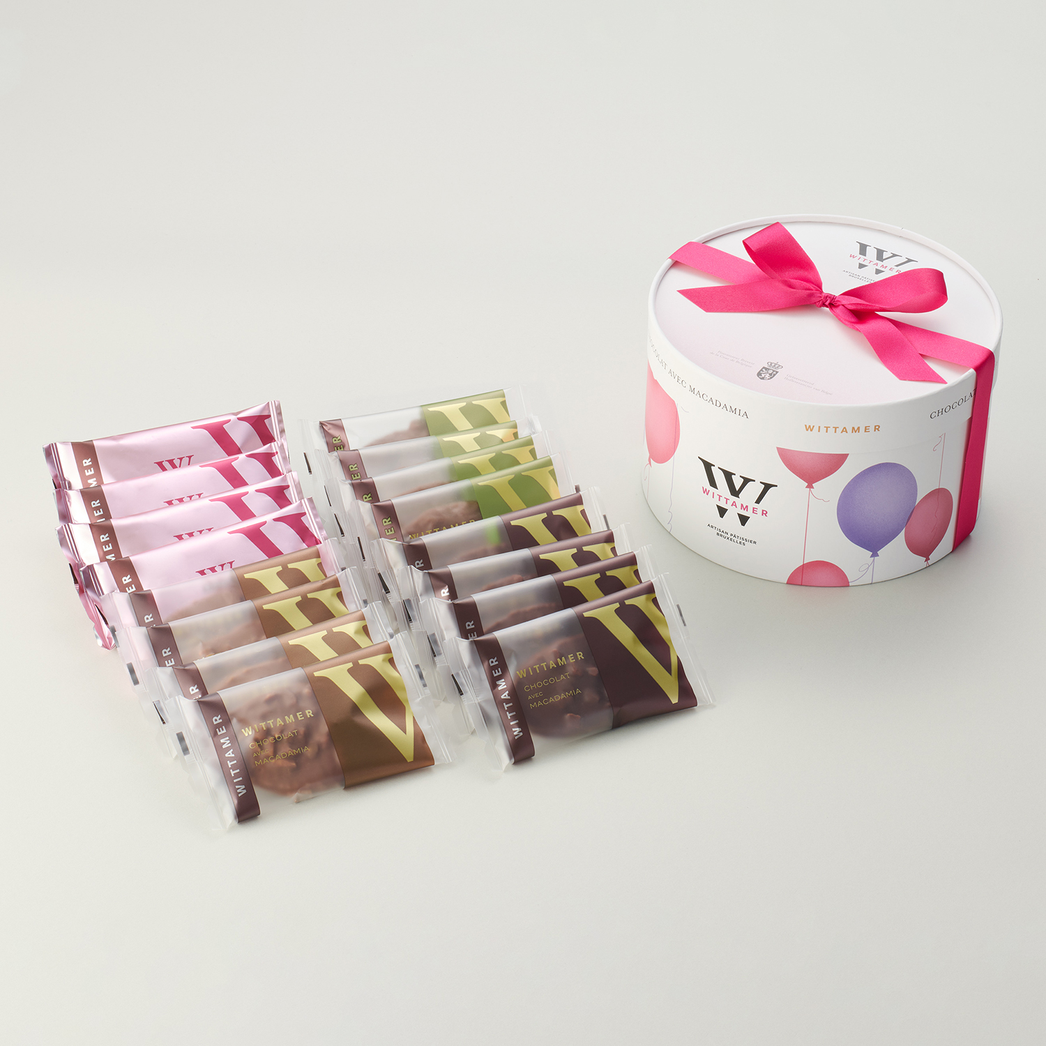 ●詰合せ内容:マカダミア・ショコラ(ミルク、ダーク、ルビー、ピスタチオ・ショコラ各4)