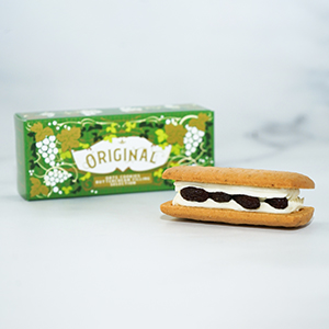 ブランデーにじっくり漬け込んだ伝統製法のレーズンとフレッシュなバタークリームを、ほんのりソルティで香ばしいオーツクッキーでサンドしたブランドの代表作です。