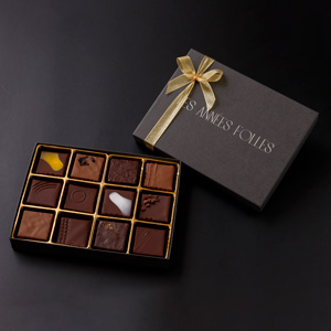 東京・恵比寿のパティスリーレザネフォールから、一粒一粒丁寧に作られたボンボンショコラです。濃厚なショコラに、味わい豊かなガナッシュを楽しめる一箱です。12粒すべて味わいが異なり、色々な種類が楽しめます。贈り物にも、ご自分へのご褒美にもオススメです。