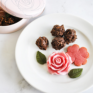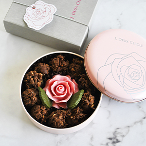 ●詰合せ内容:チョコクランチ45g、ローズチョコ(ローズ1個、葉2枚)、フレーズサブレ1枚