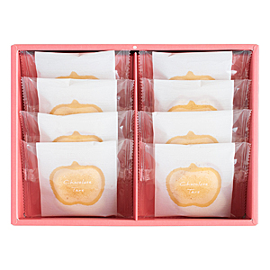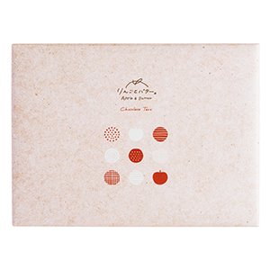 バターが香るりんご型のタルト生地に国産りんご入りのチョコレートとホワイトチョコレートを流し込みました。バレンタインの贈り物におすすめです。
