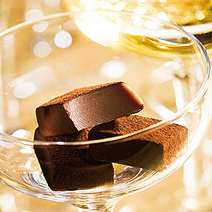 生チョコレートに合うシャンパンを探し求めて出会ったのが、フランス・シャンパーニュ地方ル・ブロイ村の「シャンパン ピエール ミニョン」でした。品質の高さと繊細な香りが高く評価されるこのシャンパンをミルクの風味豊かなチョコレートに合わせました。フルーティなシャンパンがさわやかに香る生チョコレートです。