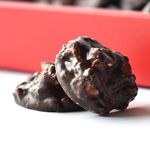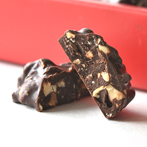 ヘーゼルナッツをローストして、ダークチョコレートでコーティングをしたシンプルなものですが、その直球勝負みたいなチョコが、素材の味わいを引き立てます。