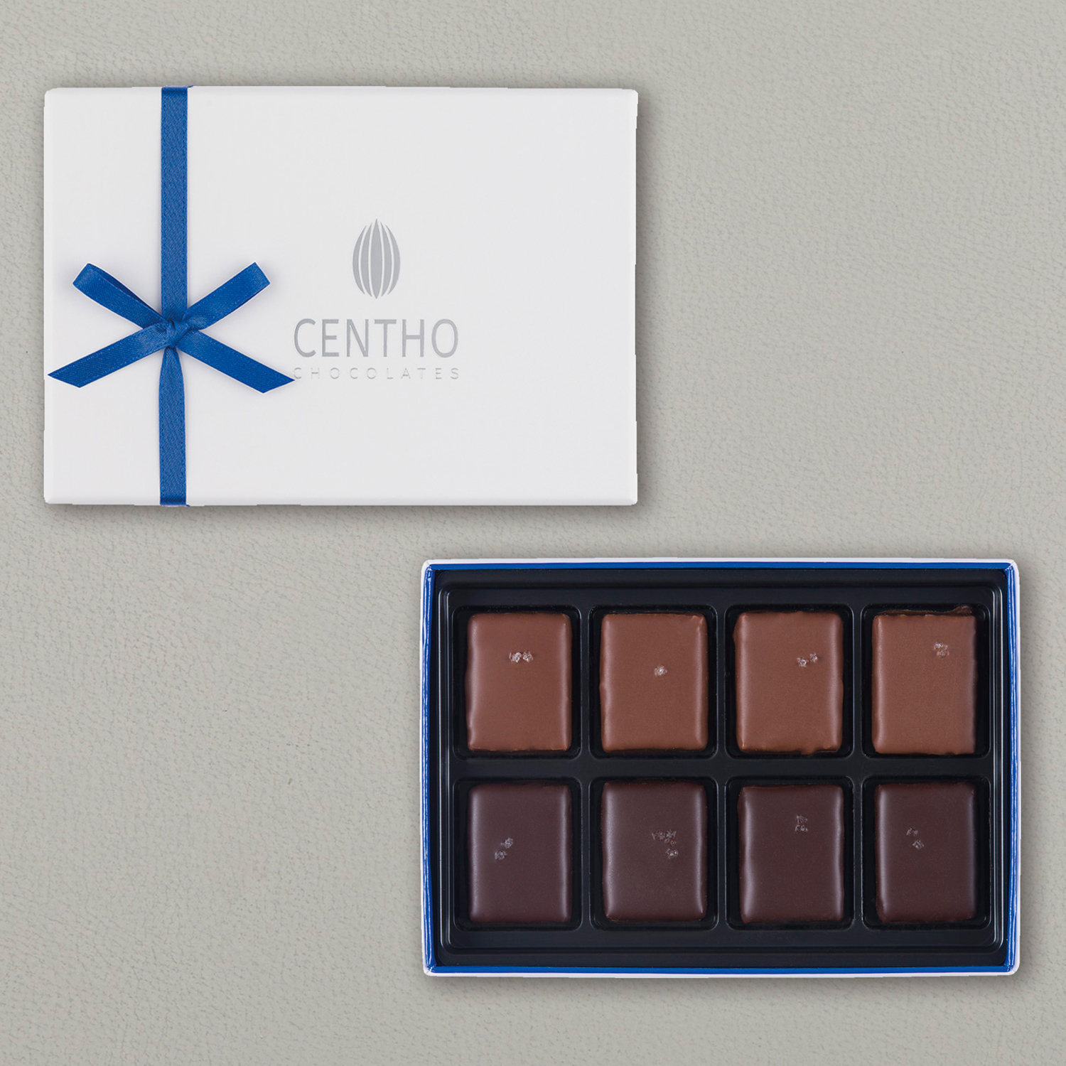 セントーの人気粒「塩キャラメル」、「スモーキーキャラメル」を4粒ずつアソートしました。