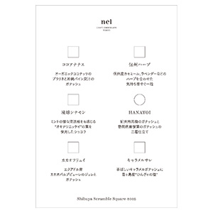 ●詰合せ内容:ココアナナス、琉球シナモン、カカオフリュイ、信州ハーブ、HANAYOI、キャラメルサレ