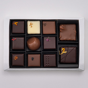 スペシャリテの鬼ぐるみのロシェやと大崎上島レモンに蜂蜜を組み合わせたガナッシュ、口どけのよい上蒲刈島の藻塩キャラメル、今年新作のやんばるマンゴーと一味唐辛子や豊後大野のかぼすとぶどう山椒など様々な味わいの楽しみが詰まっています。