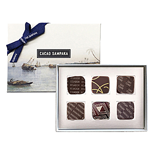 中南米からアフリカまで、世界の6種類のカカオを産地ごとに仕上げた個性豊かなボンボンチョコレートの詰合せ。知恵と経験によって、各地のカカオの個性を見極め、その特徴を最大限に活かすプロセスで作られた各産地のクーベルチュール。このクーベルチュールで作ったダークチョコレートガナッシュを、同じく同一産地のクーベルチュールで香りと味わいを逃さないようコーティングしています。ひと粒ごとに特徴を紹介したテイスティングリーフレット付き。【粒詳細】エクアドル:ほのかな酸味とジャスミンやオレンジの花を思わせるフローラルな香りが広がります。/ラ ホヤ(メキシコ):その際立つ豊かな酸味とミルクチョコレートのような色味が特徴。/サオトメ:力強いカカオ感、わずかな甘味を伴うビター感。最後に果実のような香りが重なります。/タンザニア:ドライフルーツ、赤ワインのような香りと酸味、爽やかな後味です。/カメルーン:計算されたかのような甘さと苦みのバランスが、成熟した大人の味を醸し出しています。/メキシコ:ドライレーズンを思わせる甘味・苦味・酸味が加わったバランスの取れた味わい。