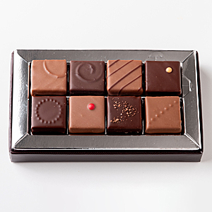 ◎ネット限定品2026年新作のマンゴーとパッションフルーツの果肉と柑橘系フルーツをブレンドした緑茶で香り付けしたガナッシュ「マンゴー パッション テヴェール」と、ジャンドゥジャとローストしたヘーゼルナッツを加えた限定のプラリネ「ヌガティーヌ レ」に、人気の「キャラメル レ」、「スリーズ ロマラン」、「グラン・マルニエ」、「シソ」、「カフェ オレ」、それに「プラリネ グリュエ セル」の8種類の様々なフレーバーが楽しめる詰め合わせ。