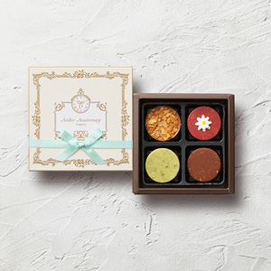 ●内容:ベリー&ルビー×1、ピスタチオ×1、コーヒーショコラ×1、塩キャラメルショコラ×1