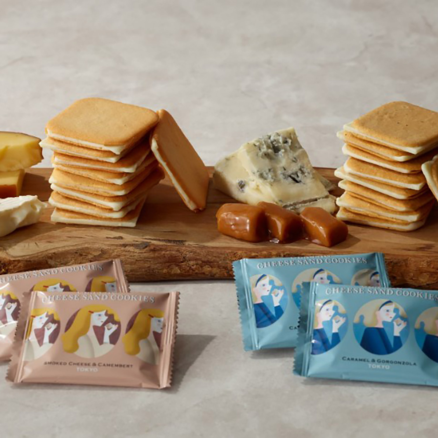 ●内容:クラシックチーズサンドスモークチーズ&カマンベール9枚、クラシックチーズサンドカラメル&ゴルゴンゾーラ9枚