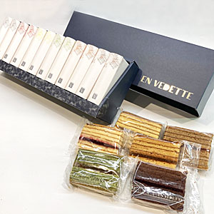 ●内容:プレーン(イチゴ)、紅茶(アップル)、バナナ(パイナップル)、抹茶(生姜・アプリコット)、キャラメル(オレンジ)、ショコラ(フランボワーズ)各2個 計12個入
