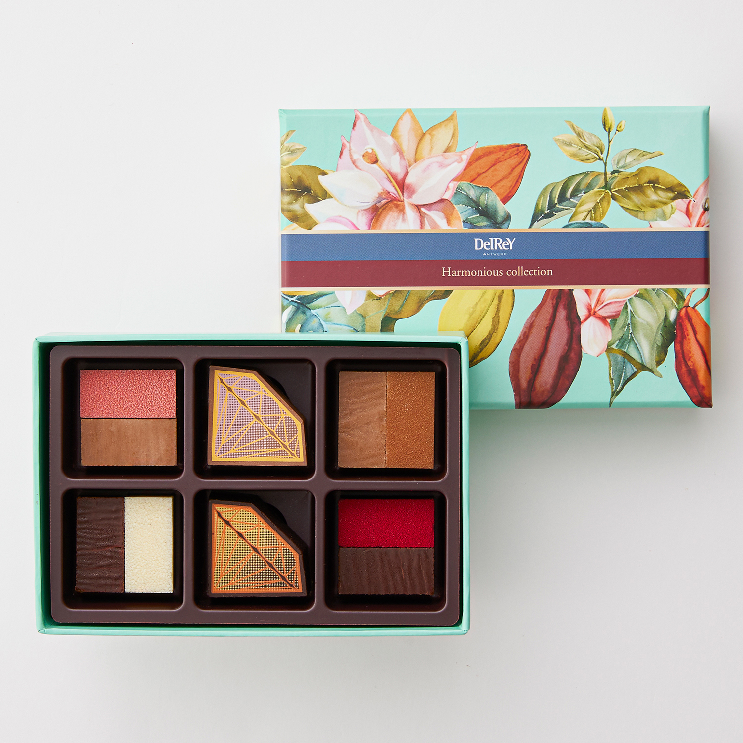 日本生まれの生チョコレートがベルギー・アントワープにて再解釈と共に更なる進化を遂げました。ストロベリー&ミルクチョコレート、バニラ&ダークチョコレート、ヘーゼルナッツ&ミルクチョコレート、ラズベリー&ダークチョコレートの生チョコレート4種と、香ばしい風味で人気なキャラメルガナッシュ、新作の甘酸っぱいストロベリージュレ&爽やかなレモンガナッシュのダイヤモンドショコラ2種を詰め合わせました。