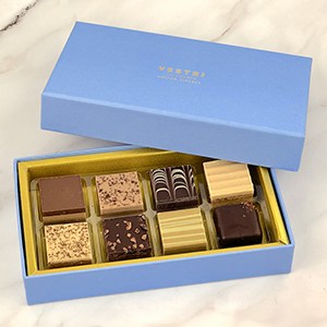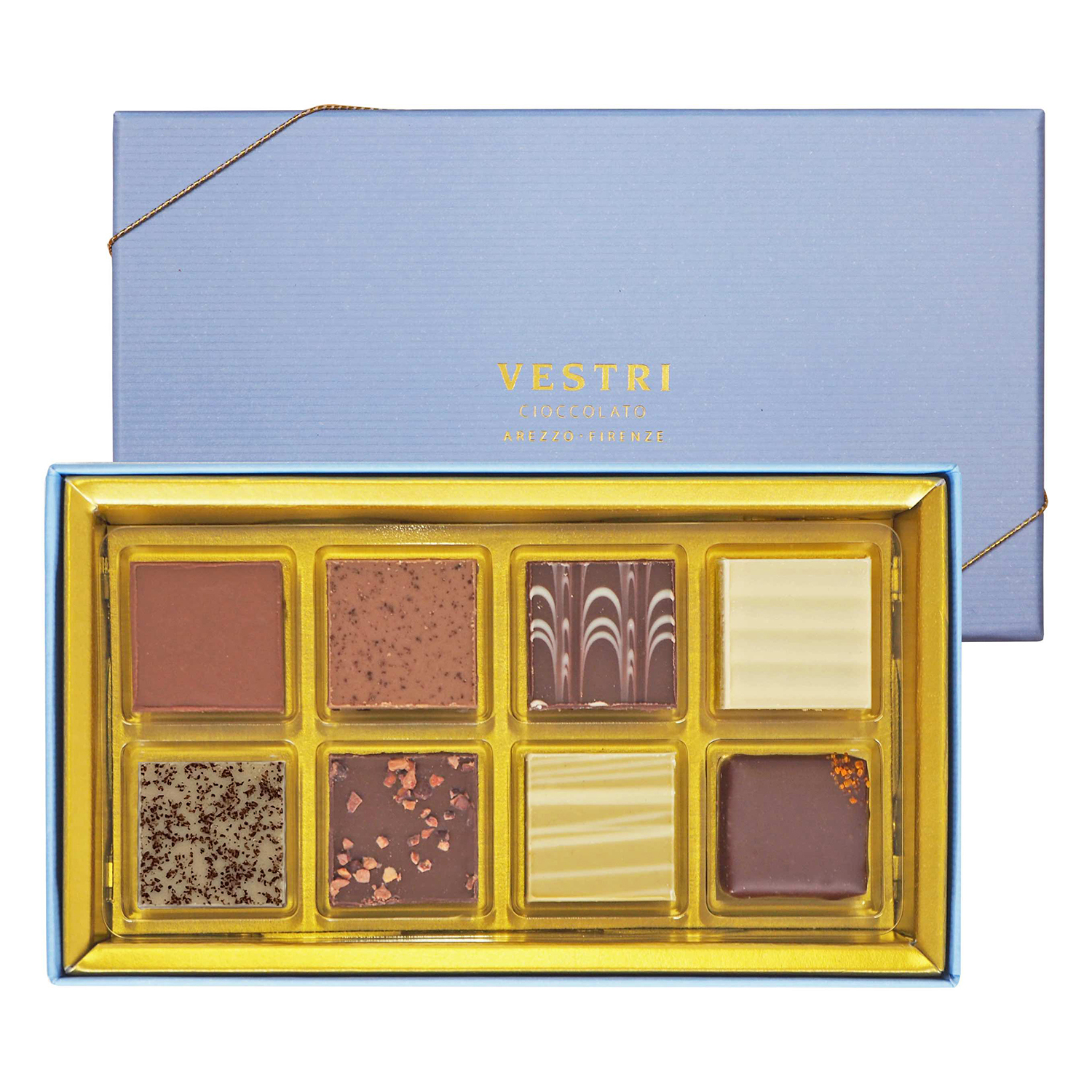 VESTRIのプラリネの中から厳選された8粒のアソート。2025年新作のティラミスが仲間入りし、よりブラッシュアップしました。世界チョコレートアウォードで金賞を受賞したクレミーノとサーレ・エ・セザモに加え、イタリアらしいピスタチオやカップッチーノ、オレンジなどバラエティ豊かなセット。